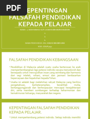 Kepentingan Falsafah Pendidikan Kepada Pelajar Pdf
